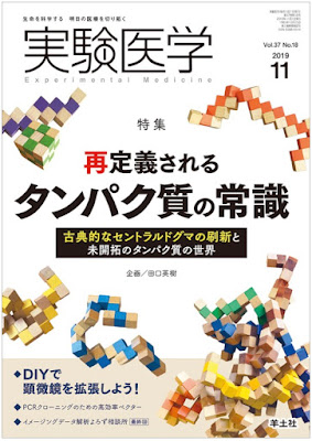 同誌には、10年近く年に二回、注目論文の解説コラムを執筆してきており、ときおり編集者の方々と意見交換をしてきた。その中で、最近私が考えているタンパク質の見方について披露したら面白がってくれて特集になった、という経緯である。