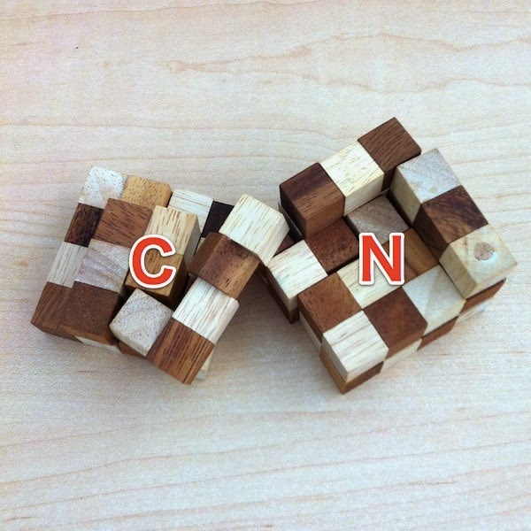 この写真のNとCの記号は何なのか、生化学を学んだ方ならすぐにわかるだろう。タンパク質になぞらえてみたのだ。